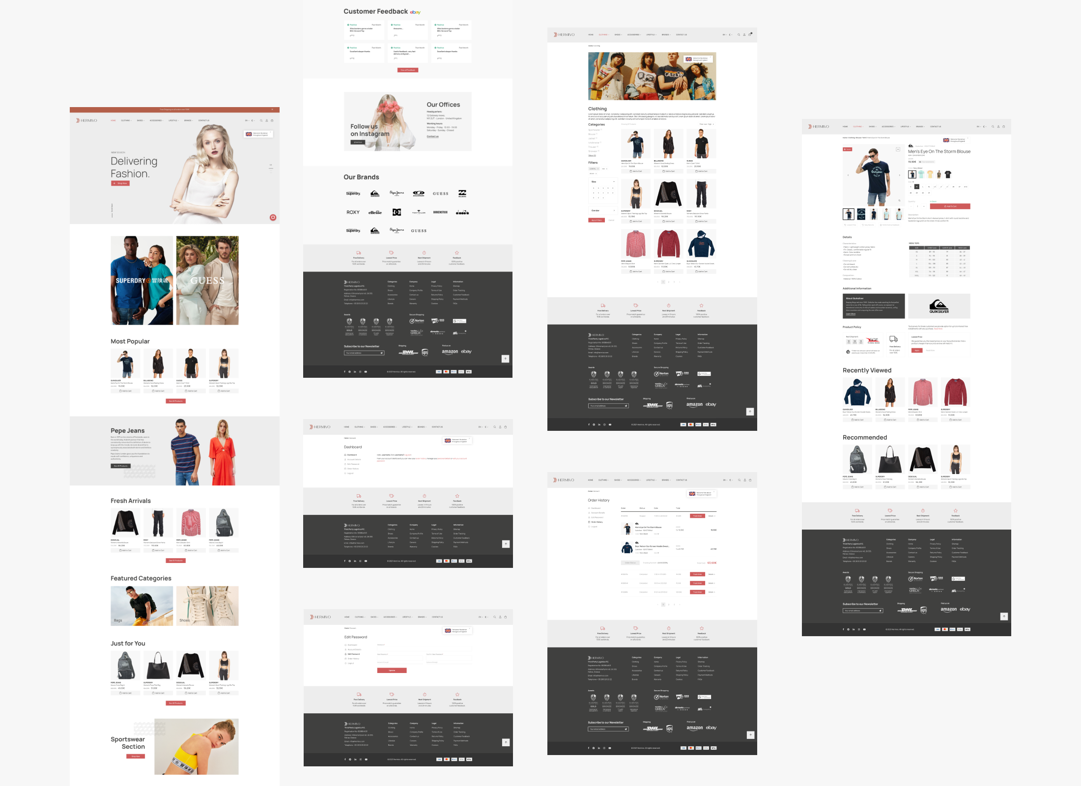 As a first place the user lands on, the homepage is crucial for the audience’s attention capture and conversion afterwards. A top clear banner was designed, that can be changed depending on the current season, featured brands sections, information architectures and selected products from the top to the best selling ones. All those sections were incorporated strategically on the homepage, aligned with a customer feedback section and a footer that contains company info, sitemap and everything the user has to know about the brand before making a purchase. We as a team, made clear that those info stay on each page of the website, so to implement those inside the footer was the best practice.