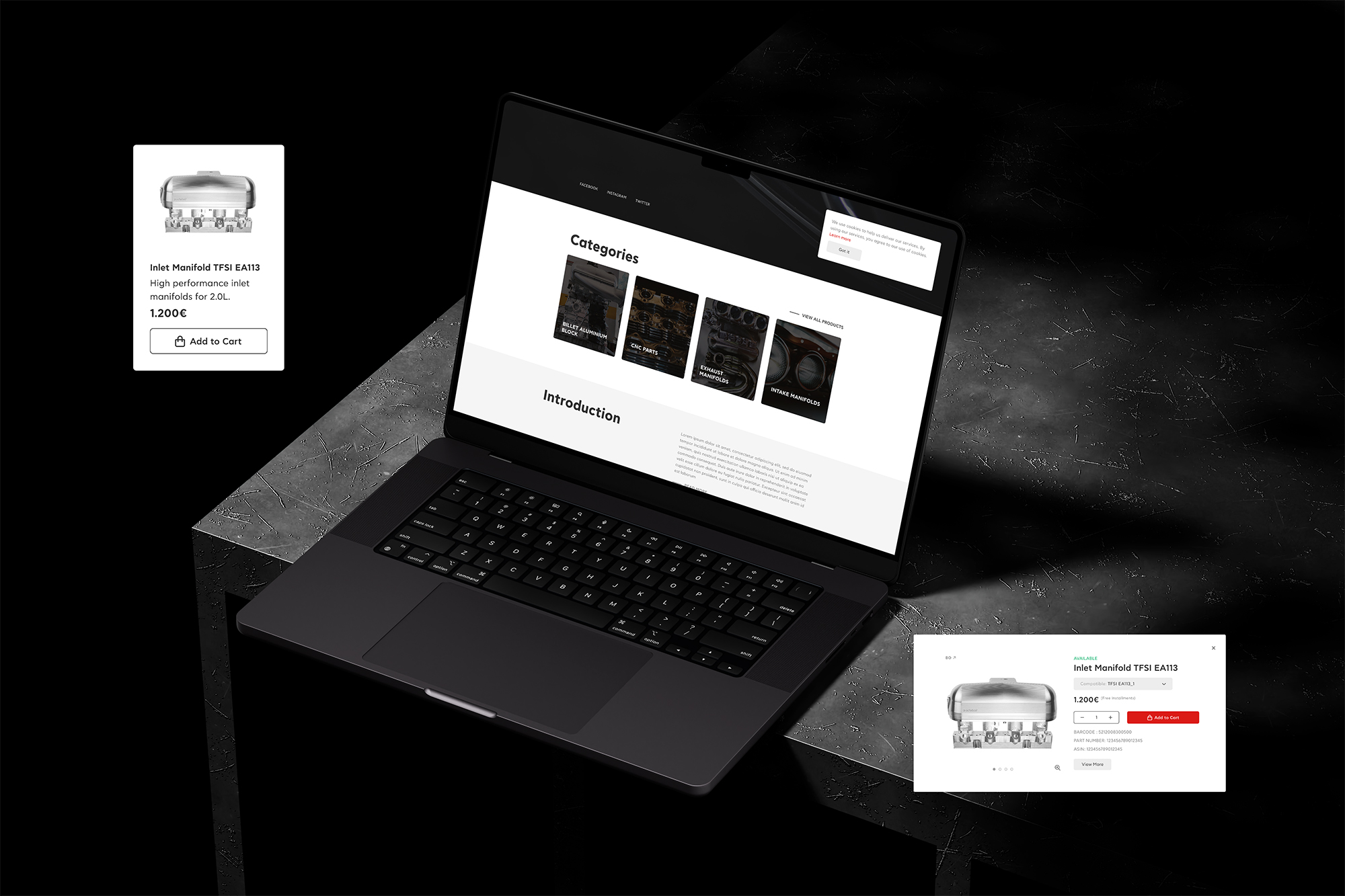 A minimal yet dynamic product page was designed and a variety of features were displayed on it, such as availability, next shipment info, compatability dropdown selection, company policies and installments if possible.