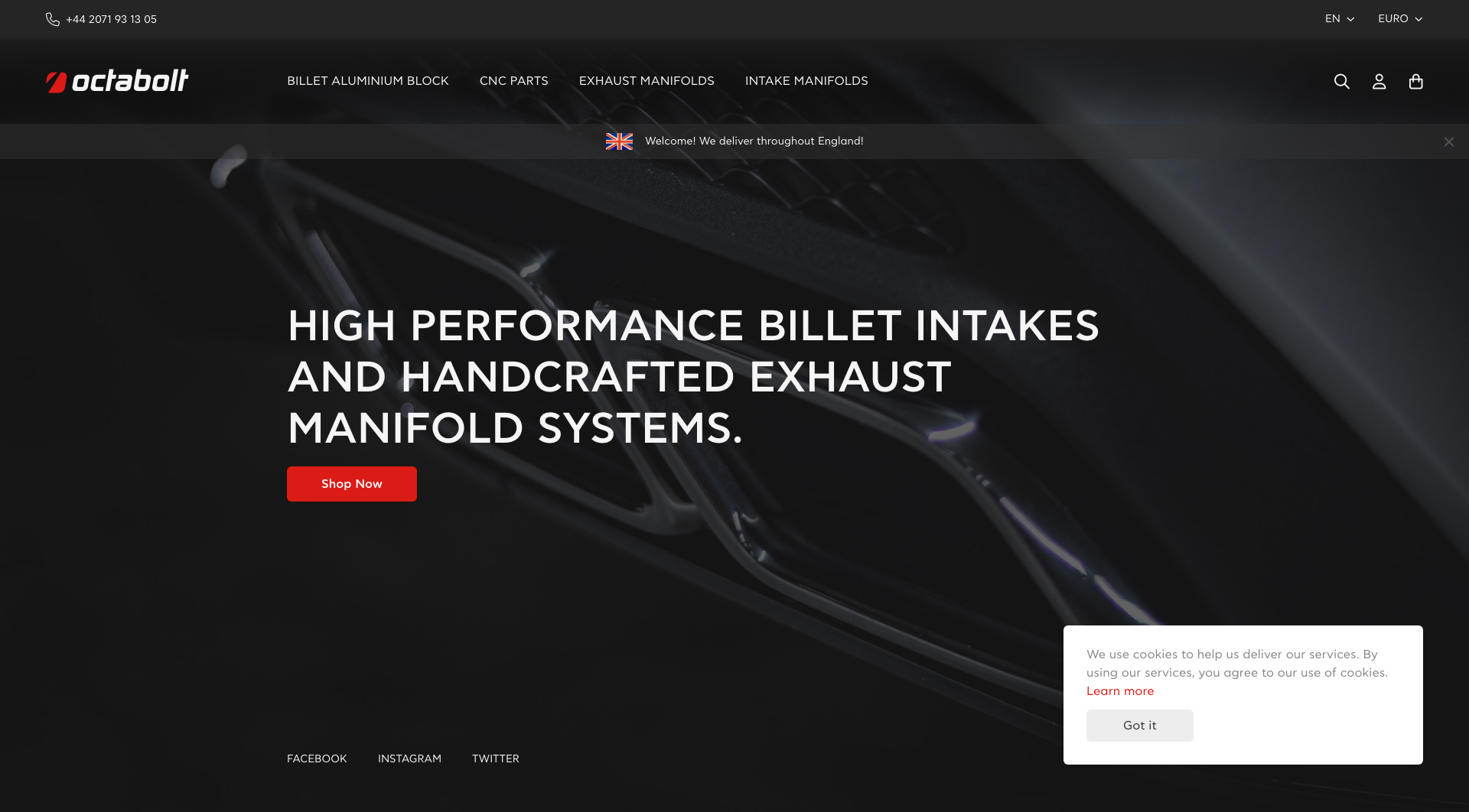The Octabolt brand was created from scratch and an e-commerce website was created in order to showcase all the different motorcycle parts products that the manufacturer is offering.